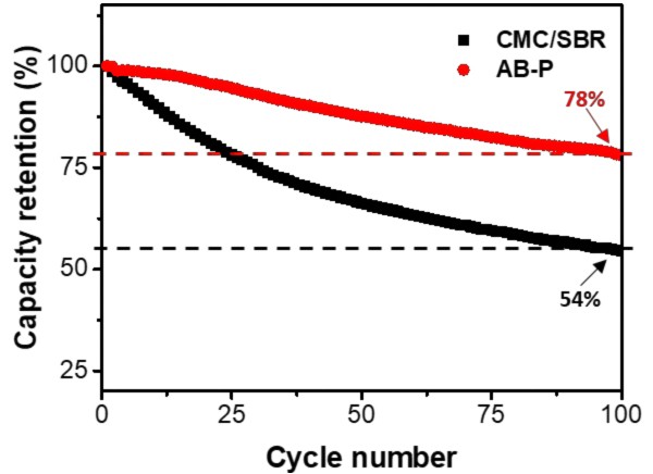 一款适用于锂离子电池硅基负极的PAA类水性粘结剂,具有粘结力强、柔韧性好、浆料稳定等特点,可以有效抑制硅基负极体积膨胀和提升硅基负极循环稳定性